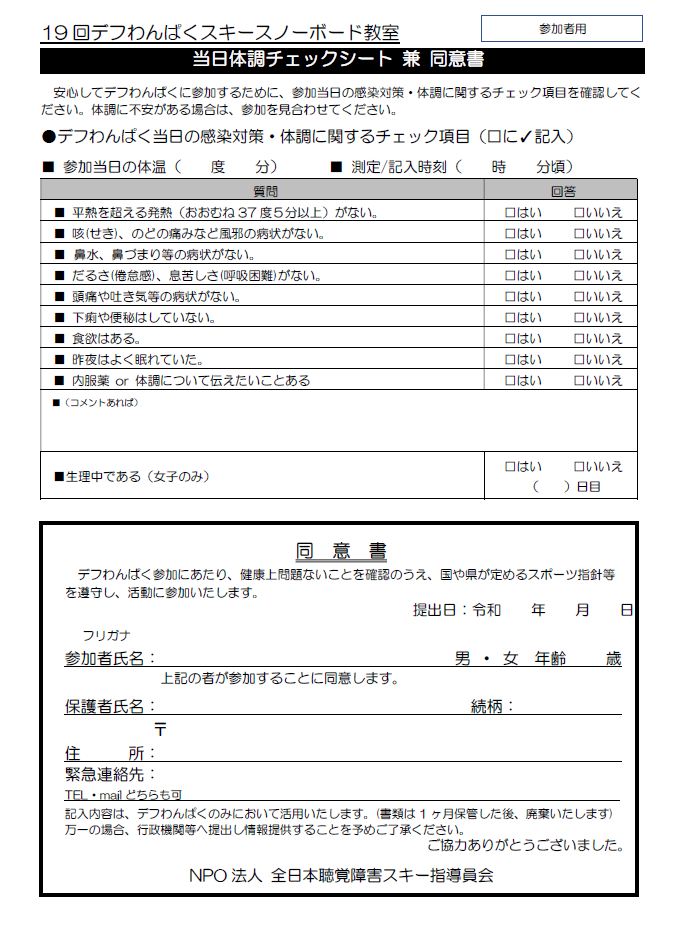☞19th 当日チェックシート&同意書